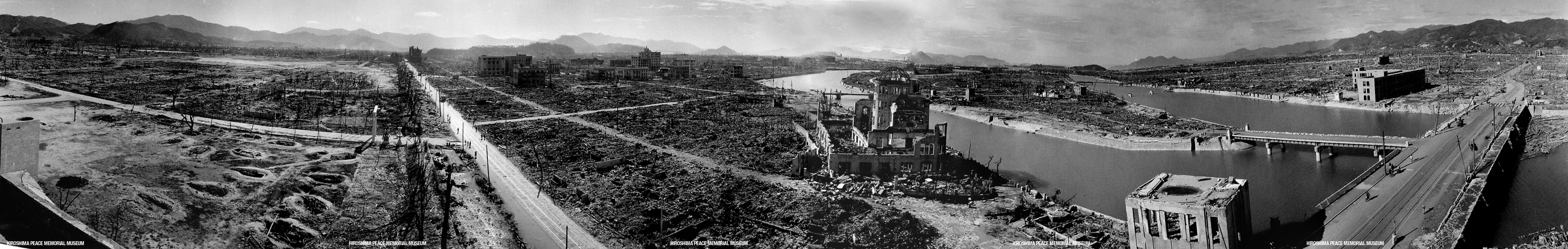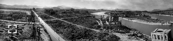 Panoramic view of Hiroshima post attack. The Genbaku Dome was directly under the epicenter.