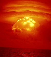 Within one second the fireball almost 7.2 km across. This fireball was visible on Kwajalein Atoll over 400 km away. The explosion left a crater 2,000 m in diameter and 76 m in depth. The mushroom cloud reached a height of 14 km and a diameter of 11 km in about a minute, a height of 40 km and 100 km in diameter in less than 10 minutes and was expanding at more than 160 meters per second (580 km/h; 360 mph).