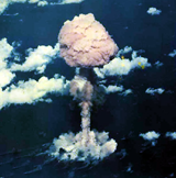 Operation Crossroads was a two shot nuclear testing series conducted in the summer of 1946. Crossroads was the first post-World War II nuclear testing series conducted by the United States, and the first nuclear weapons effects tests ever conducted. The atomic bombings of Hiroshima and Nagasaki provided an opportunity to study the effects of a nuclear weapon on a city, however, the effects of a nuclear explosion on ships were still unknown. For this reason the series sought to study the effects upon naval ships, materiel both civilian and military, and animals.