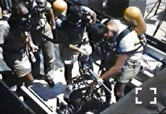 Pilots of the cloud-tracking aircraft were issued neutral density goggles to prevent temporary flash blindness. Aircraft crewmembers were required wear 22 kg of protective shielding, and to breathe 100-percent oxygen during and after sampling missions to reduce the possibility of inhaling radioactive particles.