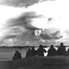I stepped out on the lanai and saw what must have been the reflection of the fireball. It turned from light yellow to dark yellow and from orange to red. The red spread In a semi-circular manner until It seemed to engulf a large part of the horizon. A cloud rose In the center of the circle. It was quite large and clearly visible. It remained visible for about a half hour.